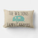 Coussin personnalisable d'accent avec un rétro campeur avec des mots "profondément satisfait"