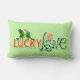 La Chance Des Irlandais ! Ce charmant coussin présente une paire de Lovebirds irlandais verts avec la citation "Lucky In Love" représentant un shamrock de chance surligné d'un arrière - plan vert clair.