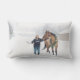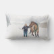 Coussin comportant Cindy avec son Irlandais de cheval.