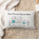 Un coussin de famille à silhouette avec une mère, un père, un fils, une fille et un bébé que vous pouvez customiser en enlevant tout personnage à bâtons que vous ne voulez pas et en le personnalisant avec votre propre nom de famille ou en changeant la couleur arrière - plan à votre goût.