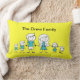 Un coussin de famille à silhouette avec une mère, un père, un fils, une fille, un bébé et un chien de compagnie de famille que vous pouvez customiser en enlevant n'importe quel personnage de bâton que vous ne voulez pas et en le personnalisant avec votre propre nom de famille ou en changeant la couleur arrière - plan à votre goût. Conçu comme un souvenir pour les réunions de famille ou la réunion, la journée de la mère ou le cadeau de fête des pères.
