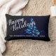 Rectangle coussin de Noël personnalisé dessin d'arbre bleu
