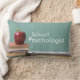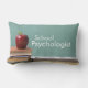 Coussin de psychologue d'école d'amusement comportant quelques vieux manuels, une pomme, et un contexte de tableau. Perfectionnez pour un bureau ou un repaire. Personnalisez avec un nom à aucune charge supplémentaire. Fait un cadeau parfait pour un psychologue d'école ou un nouveau diplômé.