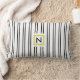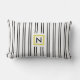 Motif à rayures noir et blanc vertical, coussin lombaire polyester avec monogramme en cadre doré. Sur le côté arrière est rayé motif avec des couleurs inversées. Autres produits noirs et blancs ici : https://www.zazzle.com/collections/black_white-119794221925521334