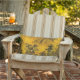 Ce coussin d'ourdoor de beaux-arts montre une impression d'un paysage oriental chinois antique. Deux petits chiffres marchent par des arbres vers une pagoda dans le premier plan. Les montagnes apparaissent indistinctement dans la distance. Les couleurs d'automne sont or, jaune, orange, vert, brun et noir.
