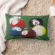 Ces piscine/coussin lombaire de billards (21" x13") comporte un arrière - plan de vert de table de billard, des queues de billard et des boules de piscine. Perfectionnez pour n'importe quelle pièce dans votre maison ou bureau. Grand cadeau pour le requin de piscine dans votre vie. Ce coussin est disponible dans la ride libèrent le polyester 100% ou 100% évaluent le coton d'A.