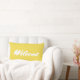 Ce coussin lombaire jaune indique le "accueil" dans les lettres blanches. Le texte peut être changé en vos mots désirés tels qu'un nom ou une salutation différente.