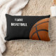 coussin lumbar à thème de basket-ball avec texte "I Love Basketball" vous pouvez customiser et design recto verso avec photo de closeup d'un vrai basketball. Un cadeau formidable pour ce gars qui est difficile à acheter, ou ce fan de basket qui a tout.
