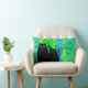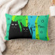 Coussin d'art de chat noir, "maman de chat", vert et couleurs abstraites de bleu, deux chats noirs sur le chat noir plan et grand sur le dos dans des couleurs coordonnées.