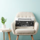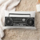Un coussin avec une image noire et blanche d'une radio là-dessus. Il a une rétro sensation à lui.