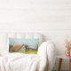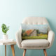 Ce coussin lombaire présente l'image d'une grange robuste au toit rouge dans une prairie ensoleillée peinte à l'origine dans des pastels doux par Jayne Wilson.