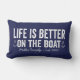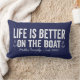 LA VIE EST MEILLEURE SUR LE BATEAU Nom de famille avec oreiller à lancer de l'année établie. Choisissez un format lombaire ou carré. Personnalisez ce coussin en entrant votre nom et votre date d'établissement dans les champs personnalisés fournis. Montré en texte blanc sur arrière - plan de marine. Un cadeau parfait pour les amoureux du bateau !
