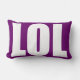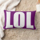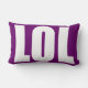 Rectangle LOL blanc sur le coussin violet
