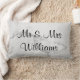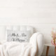Ce carreau a un arrière - plan de marbre blanc illustré de Carrare et indique, "M. et Mme" avec le nouveau nom de famille marié sur l'avant, et "nous avons fait" avec la date de mariage des ménages mariés nouvellement sur l'arrière, faisant lui un grand coussin d'accent pour la table d'amoureux de mariage, et aux nouveaux mariés à la maison après le mariage.