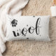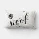 Ce coussin de citation de chien mignon est noir et blanc et a texte woof avec un design empreinte de patte de peinture éclatante pour la décoration de maison pour les amateurs de chien partout. Copyright artistique original Ann Powell tous droits réservés.