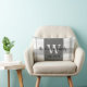 Rectangle monogramme personnalisé coussin gris et blanc plai