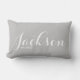 Personnalisez notre coussin lumbar de nom avec votre propre. Cela fait un beau cadeau de ménage. En gris avec typographie en script blanc.