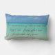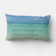 LE DÉCORATIF LUMBAR THROW PILLOW DISPOSE D'UNE PHOTO DE L'EAU BLEU-VERT DES CARAÏBES SOUS UN CIEL BLEU. LA CITATION : "NOS SOUVENIRS DE L'OCÉAN S'ATTARDERONT LONGTEMPS APRÈS LA DISPARITION DE NOS EMPREINTES" APPARAÎT DES DEUX CÔTÉS. AJOUTEZ-LE À VOTRE DÉCOR BEACH HOUSE OU À N'IMPORTE QUEL ENDROIT OÙ VOUS SOUHAITEZ CRÉER UNE AMBIANCE DE PLAGE DÉTENDUE.
