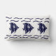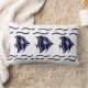 Rectangle poisson bleu marine & vagues sur un COUSSIN blanc