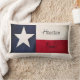Le drapeau du Texas lance l'oreiller avec votre nom de ville. Réversible, l'autre côté est bleu. Disponible en différentes tailles.