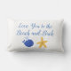 Notre "Love you to the beach and back" coussin d’étoiles de mer et de baleines est l’ajout parfait à votre maison de plage ou chambre d’enfant.