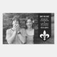 Bannière moderne et élégante Chic Flourish Photo Save the Date Stickers avec une bannière flèche ornée d'une simple décoration de fleur de lis. Ces autocollants de date classe sont parfaits pour annoncer votre prochain mariage. Facile à customiser, ajoutez simplement vos propres photos et détails mariages. Cliquez sur "Customiser" pour trouver d'autres options de personnalisation.