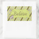 Les autocollants du rectangle Believe Diagonal Stripes présentent des cloches jingle à l'ancienne sur un arrière - plan de bandes diagonales brune, olive claire et grise avec une bannière d'olive légère avec un texte marron qui dit Believe. Nous avons des enveloppes assorties, des cartes de voeux, des étiquettes et des timbres-poste !