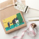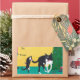 Ajoutez un peu de plaisir pour le chat et le chien avec ces autocollants personnalisés. Ils présentent une peinture d'un chat jouant avec une baguette et d'un chien se retournant pour voir ce qui se passe, près du sapin de Noël, par CherylsArt. A et De est le texte prêt à être imprimé, ou vous pouvez facilement modifier le texte sur le formulaire modèle.
