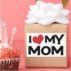Faites savoir à votre mère que vous l'aimez cette Fête des Mères avec ce sticker rectangle qui dit, "I Love (Heart) My Mom" dans une hanche, police rétro.