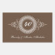 Célébrez le couple d'anniversaire en toute élégance. Un arrière - plan marron chocolat met en vedette un texte customisé avec le nombre d'années de mariage mis en évidence dans un ornement complexe. Ajoutez le nom du couple ou un autre message en dessous. Grand comme les scellés d'enveloppe ou faveurs. Disponible en couleurs alternatives avec des produits correspondants.