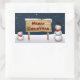 Rectangulaire Snowmen mignon souhaitant Joyeux Noël - Sticker