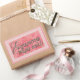 Autocollant rectangulaire avec les mots "efharisto para poli" (merci beaucoup en grec) sur un arrière - plan floral rose avec une bordure clé grecque rose. Voir le sac de faveur, le ballotin et l'étiquette cadeau correspondants. Voir l'ensemble de la collection Toga Sticker dans les INVITATIONS | Section Stickers & Étiquettes.