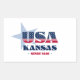Autocollant Kansas. Cette conception reflète l'esprit de l'État du Kansas en 1861 avec un texte audacieux et les couleurs vives du drapeau américain.