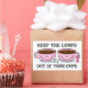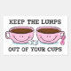 Soutenez la sensibilisation au cancer du sein avec cette conception amusante qui a un message important. Le texte dit : GARDEZ LES LUMPES SORTIR DE NOS COUPES. Doté de deux tasses à café roses souriantes, de morceaux de sucre et de ruban rose pour le cancer du sein. Assurez-vous de vérifier vos seins ! Parfait pour les patients atteints du cancer du sein, les survivants et les partisans d'un traitement. PinkInkArt original !
