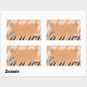 Peach Jingle Bells Stripe autocollants rectangle est doté de cloches jingle à l'ancienne et d'un flocon de neige chromé sur un arrière - plan de pêche, de coraux et de bandes chromées en diagonale avec une bannière corallienne avec le texte Peace on Earth. Nous avons des enveloppes assorties, des cartes de voeux, des étiquettes et des timbres-poste !