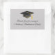 Terminez une grande fête de graduation avec ces autocollants sur vos faveurs. "Merci d'être venu à ........ Fête de l'obtention du diplôme !" Il y a un casquette noir au centre supérieur avec un arrière - plan gris/argent. Découvrez les nombreux autres produits correspondants que nous avons dans notre magasin : bannières, serviettes, invitations, et bien plus encore.