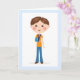 Carte de voeux avec un petit garçon de bande dessinée avec son bras cassé dans un plâtre et une fronde. Texte à l'intérieur : Je vous souhaite une reprise rapide!