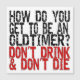 Comment arrivez-vous à être un vieux minuteur ? Ne bois pas et ne meurs pas ! Une vieille blague ou un slogan de récupération en 12 étapes. Douze étapes Les Oldtimers et mon sponsor disent tout le temps celui-ci. Conçu par Henry Nelson de Wichita Kansas