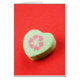 Photographie d'un coeur de bonbons vert menthe avec un symbole de recyclage rouge sur un arrière - plan rouge.