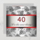 Amusante invitation à la fête du 40e anniversaire d'une femme noire damassé argent et rouge. Personnalisez et customisez l'arrière avec votre choix de style de police et de couleur de police, et la couleur de l'arrière - plan côté arrière.