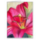 avec un design original de la peinture aquarelle de Sacha Grossel de fleur de lys rouge alerte jour. Cette fleur croustillante contre un arrière - plan vert est lumineuse et colorée dans un style botanique, gros plan, macro.