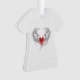 Coeur rouge peint de façon artistique avec ailes d'ange gris, décoré de contour lisse noir.