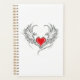 Coeur rouge peint de façon artistique avec ailes d'ange gris, décoré de contour lisse noir.