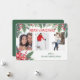 Trois de vos photos de famille préférées occupent le devant de la scène sur cette carte de Noël à feuillage persistant et festive. Une bordure d'aiguille en pin rouge, sainte et à feuillage persistant est le cadre parfait pour vos photos au centre. Le texte rouge "MERRY CHRISTMAS" est juste au-dessus des photos. Un bouquet attaché avec un ruban de vacances rouge et blanc en plaid au coin inférieur et votre texte personnalisé en vert finit le design. Le verso de la carte correspond au vert.