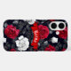 Des roses rouges, noires et blanches recouvrent ce beau coque iphone gothique. Personnalisez avec votre nom dans une police de caractères noir blanc à l'intérieur d'un ruban rouge.