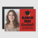 A personalized graduation announcement magnetic card in red and black for a high school, college, or university from the class of 2026. Customize with your school name and graduating class under the lovely calligraphy for an elegant personalized graduate photo magnet with your senior portrait photograph.
