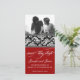 Elégant rouge noir Damas Enregistrer le Carte photo Date. Utilisez ces élégants enregistrer la date avec motif damask complexe et script merci texte pour envoyer votre faire-part mariage à vos futurs invités mariages. Ajoutez votre propre photo et personnalisez votre message. Exemple de photo uniquement comme indiqué. Police et graphiques sous licence pour utilisation. Conception par Elke Clarke ©