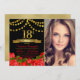 Filles 18ème anniversaire invitation avec de beaux numéros d'or et des bannières sur un joli arrière - plan floral rose noir et or rouge. Cette élégante invitation à la fête du 18ème anniversaire de photo est facilement customisée pour votre événement en ajoutant simplement votre photo et les détails de l'événement dans le style de police que vous préférez. Vous pouvez également modifier la couleur de l'arrière - plan. Il s'agit d'un dessin imprimé sans parties scintillant réelle, feuille, etc.