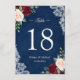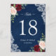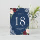 Red Blush Floral Navy Blue Mariage Numéro de table