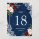 Burgundy Blush Floral Lace Navy Blue Mariage Carte Numéro de table. (1) Veuillez customiser ce modèle un par un (par ex. du numéro 1 au xx), et ajouter chaque carte de numéro séparément à votre panier. (2) La taille par défaut est de 4,5" x 6,25", vous pouvez la changer en d'autres tailles (par exemple 3,5 x 5, 5 x 7 ...) (2) Pour plus de personnalisation, cliquez sur le lien "customiser plus loin" et utilisez notre outil de conception pour modifier ce modèle. (3) Si vous avez besoin d'aide ou d'articles correspondants, veuillez me contacter.